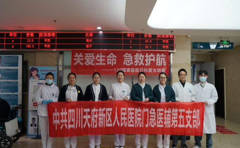为响应四川省医院协会《关于开展“国家急救日倡议活动暨120急救科普大课堂公益培训”的通知》要求,进一步增强公众自救互救能力,普及急救知识技能,2026年1月20日,四川天府新区人民医院急诊科联合门急医辅第五党支部、门诊办公室,在门诊大厅成功举办主题公益活动,为现场患者、家属及社区居民送上了一场实用的急救知识盛宴。