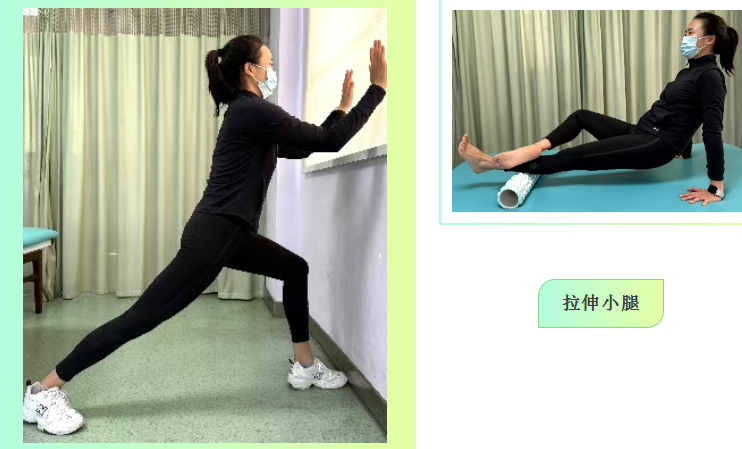 双手扶墙,呈弓步站立,拉伸侧的腿部尽量向后伸直并保持后跟着地,保持30秒,重复3-5次。也可使用泡沫轴放松小腿三头肌,将泡沫轴置于小腿下方,前后滚动,针对痛感明显处可着重按压15-30秒,重复3-5次。