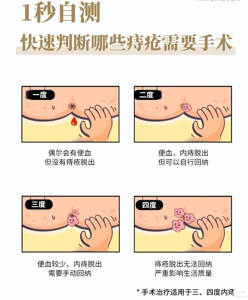 4种自测场景图片(Ⅰ度-Ⅳ度痔疮)