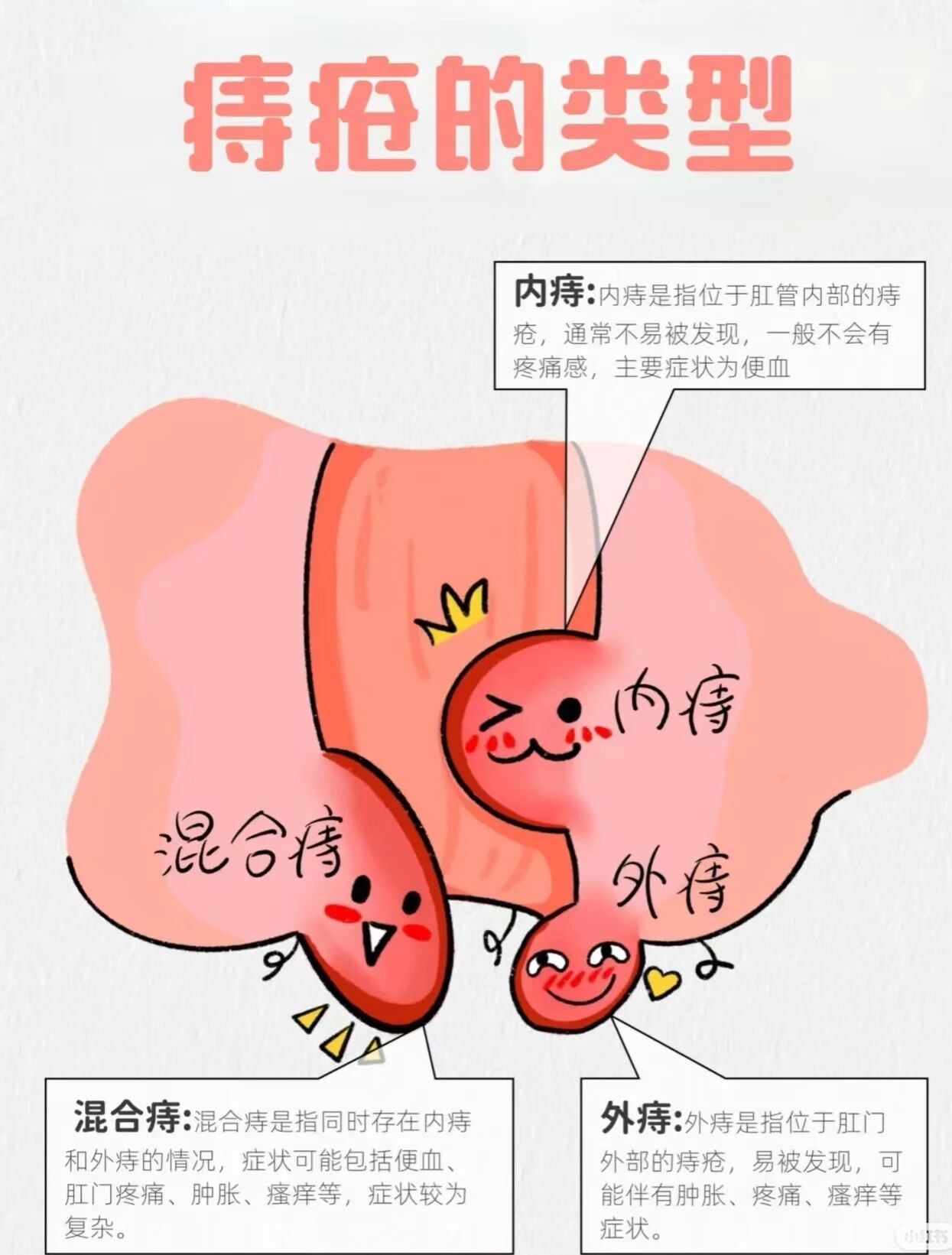 ✅ 混合痔:内外痔同时存在,又痛又便血,肉球还会脱出,是最磨人的类型!