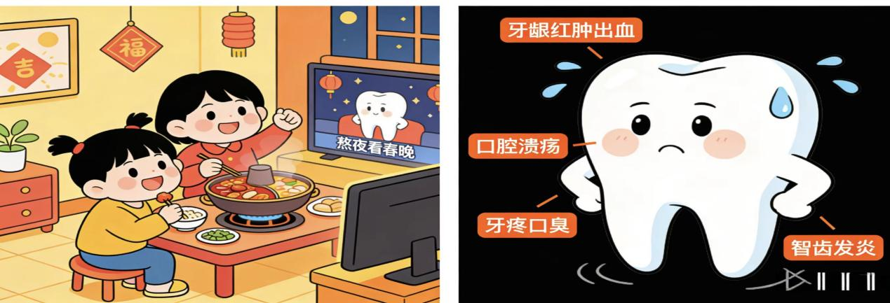 都说“每逢佳节胖三斤”,这一个“胖”来自我们每一次相聚时对美食的大快朵颐,彻夜畅谈时的烟酒加持,或是我们“不吃火锅就吃烧烤”的饮食习惯,但所有的一时畅快就变成了口腔各种小问题,比如我们常见的: